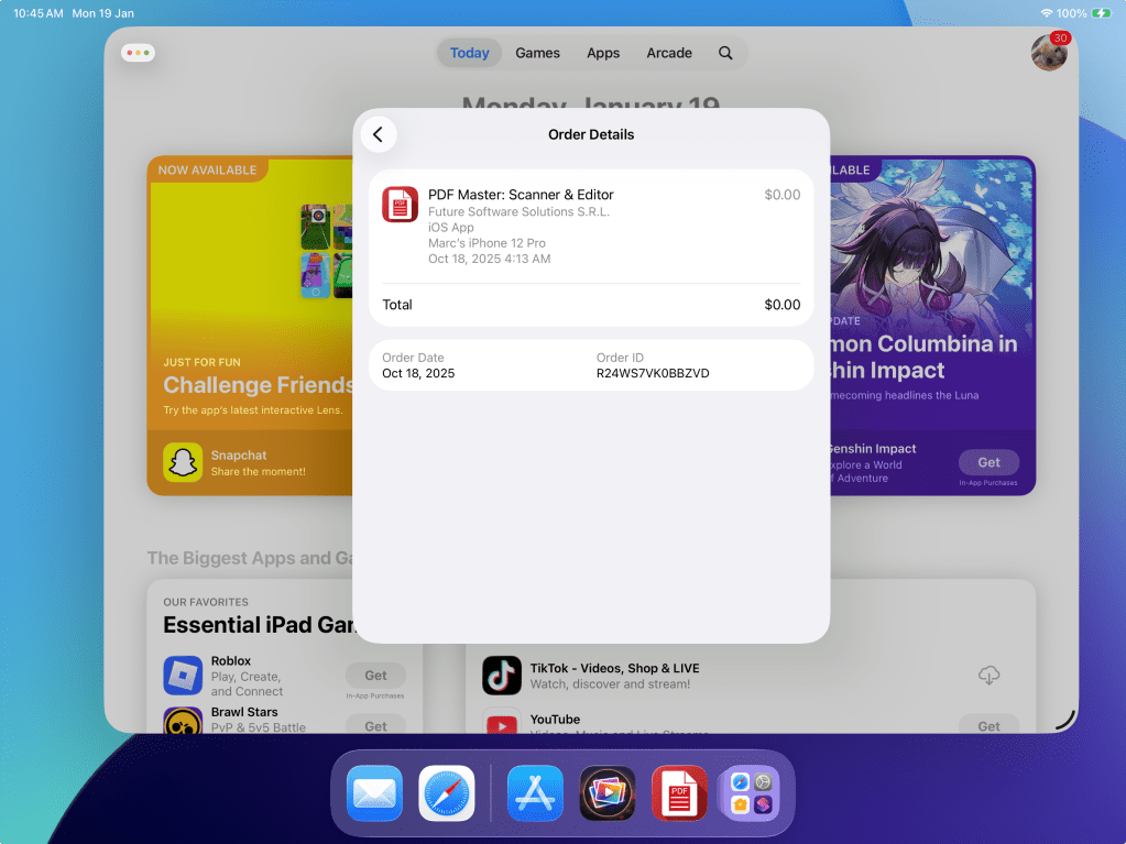 Future Software iPad App Receipts